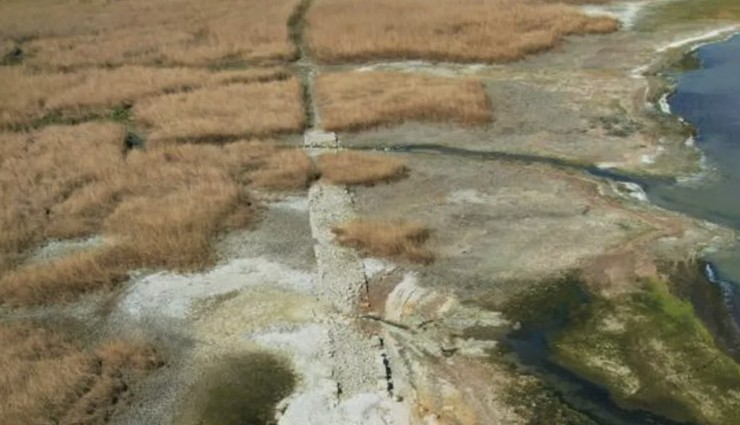 Gittikçe küçülen Terkos baraj gölünün kıyılarının bazı bölümlerinde sular yüzlerce metre geri çekildi. Geçen yıl 20 Mart 2022 tarihinde yüzde 83.2 olarak ölçülen doluluk oranı bu yıl 31.38’e geriledi. Bu çekilme sonucu gölde bulunan tarihi bir yol ortaya çıktı.